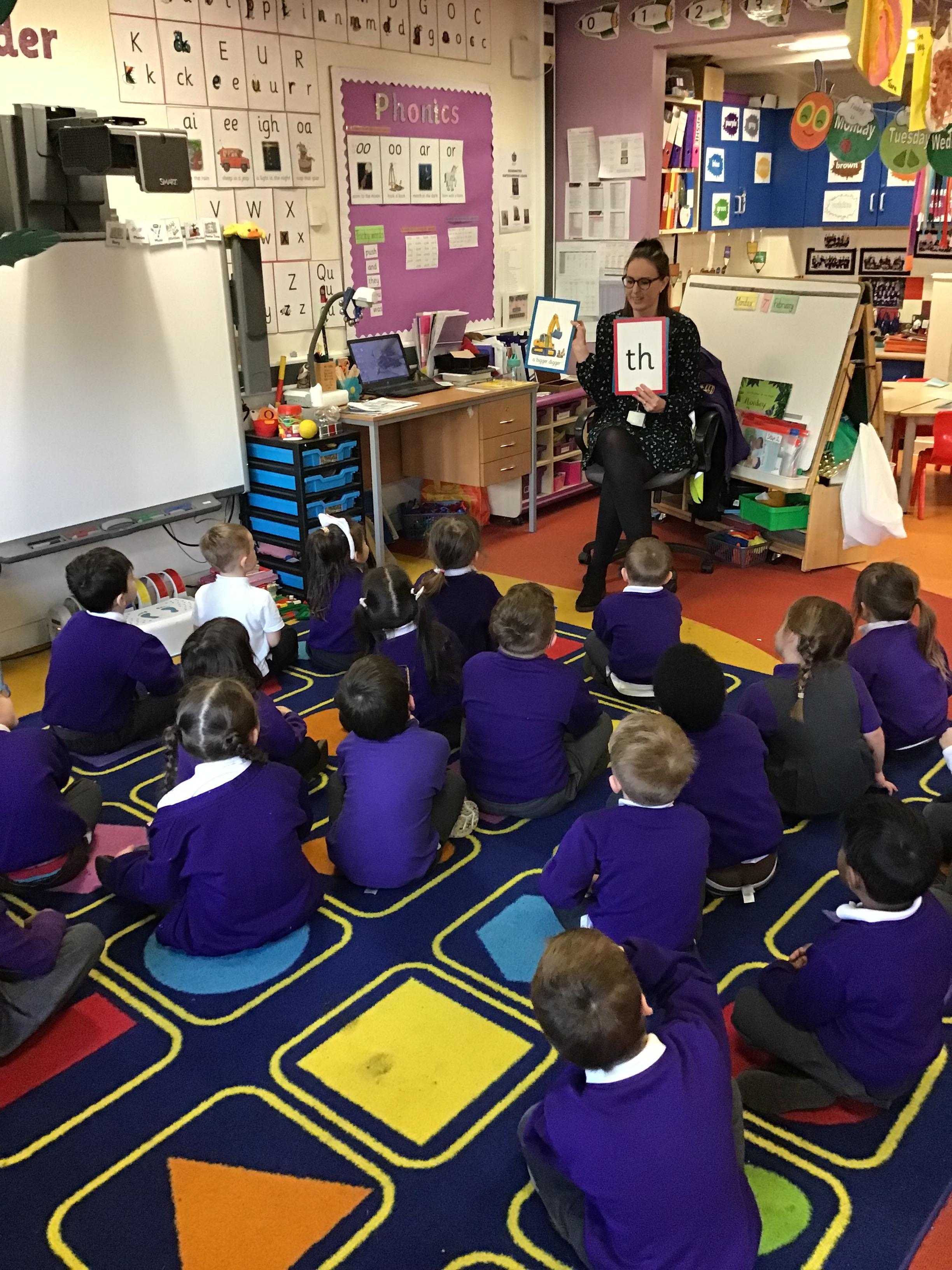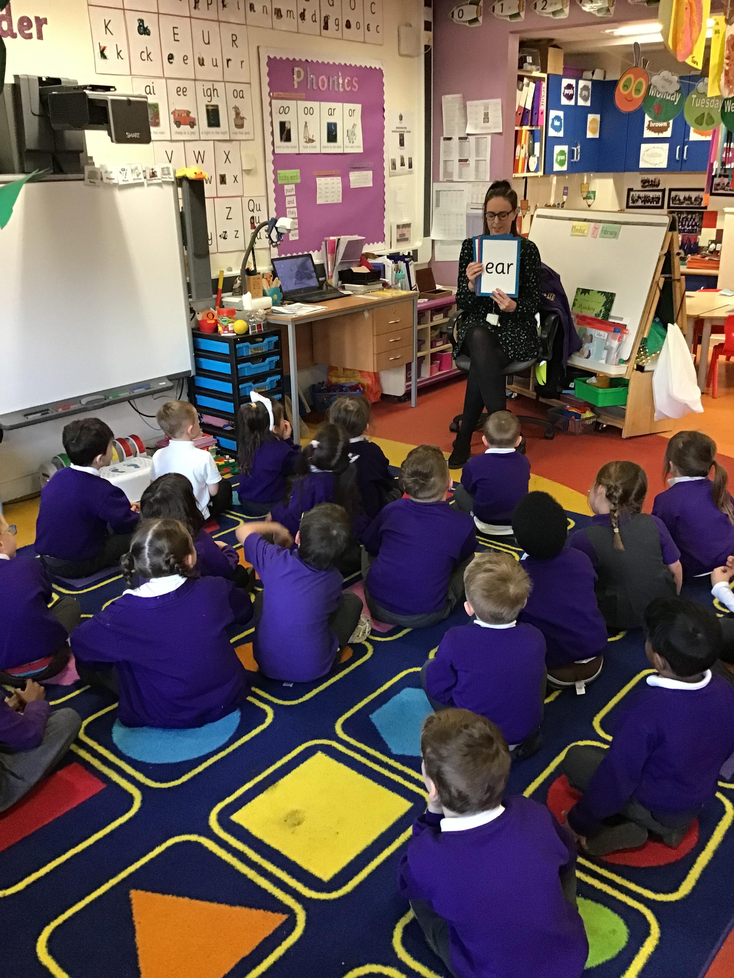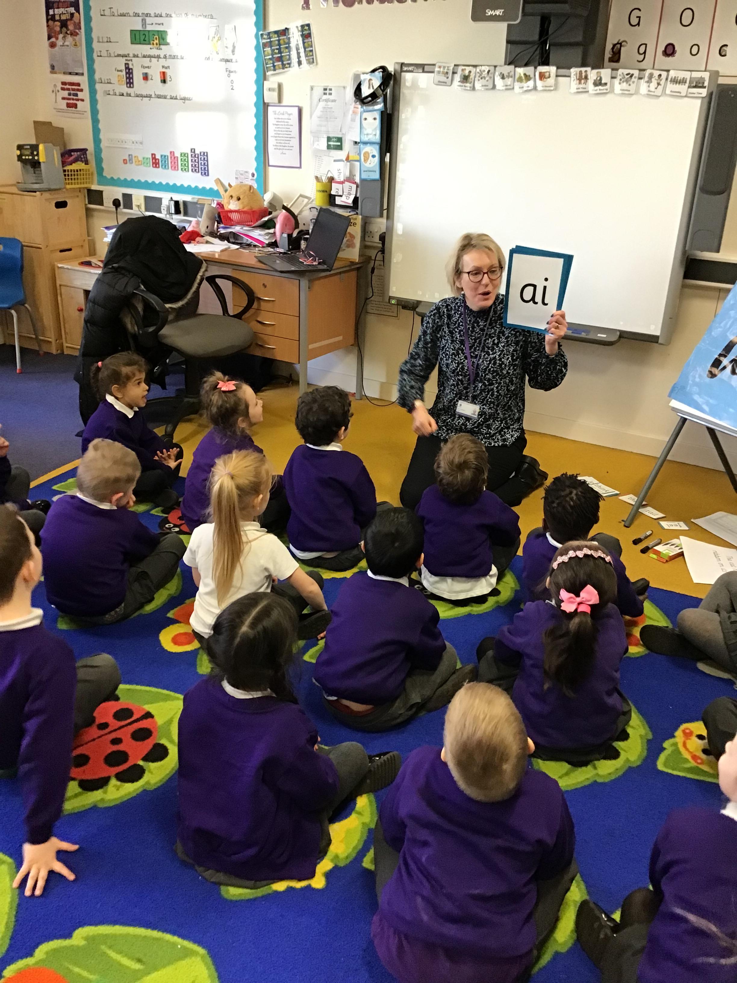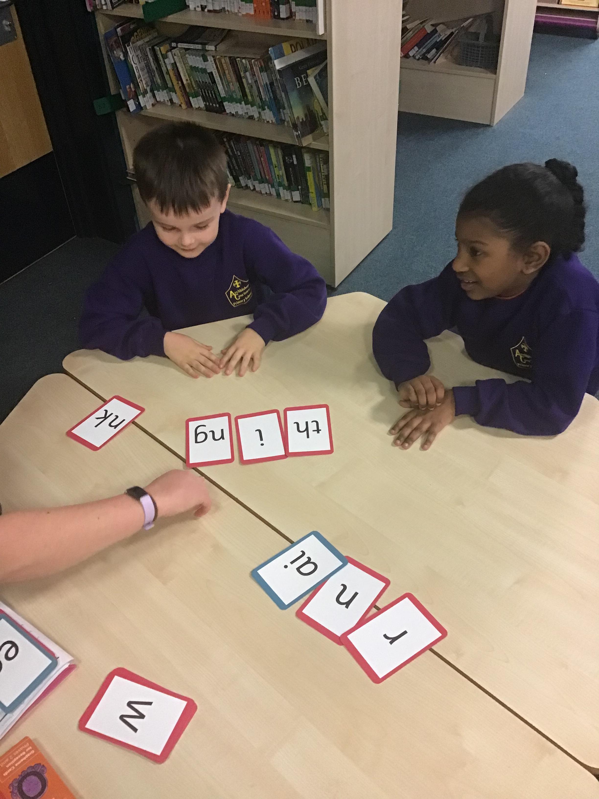 As a result, all our children are able to tackle any unfamiliar words as they read. We also model the application of the alphabetic code through phonics in shared reading and writing, both inside and outside the phonics lesson and across the curriculum. We have a strong focus on language development for our children because we know that speaking and listening are crucial skills for reading and writing in all subjects.