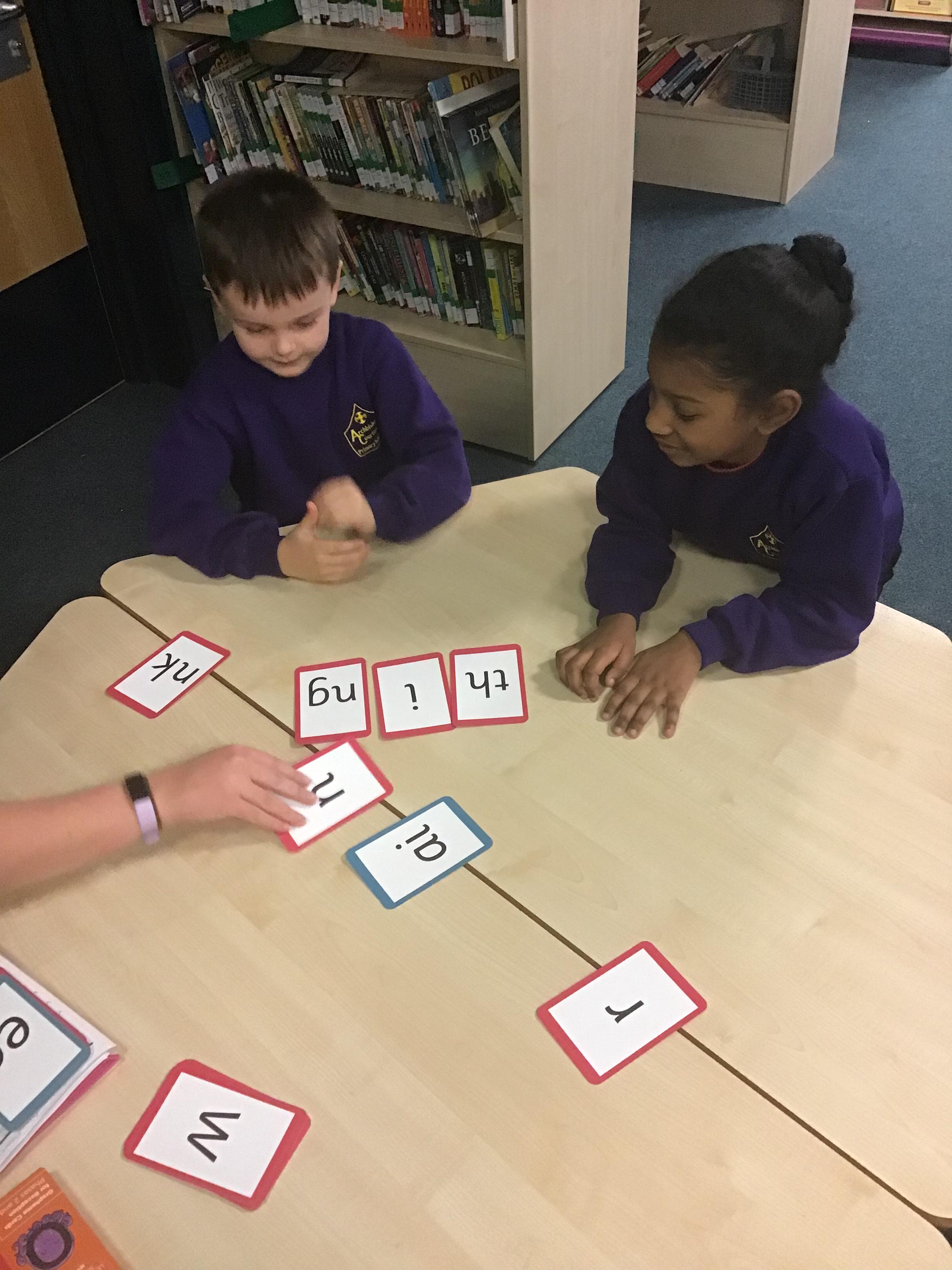 We use Little Wandle Letters and Sounds for the teaching of phonics throughout the school. We teach phonics for 30 minutes a day. In Reception, we build from 10-minute lessons, with additional daily oral blending games, to a full-length lesson as quickly as possible. Each Friday, we review the week’s teaching to help children become fluent readers. Children make a strong start in Reception: teaching pf phonics begins in Week 3 of the Autumn term.