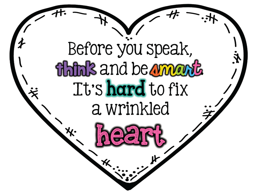 Cut a heart shape using a piece of paper. In our Teams meeting we will be thinking of words that could crumple a heart. For each unkind word, make a fold in your paper. At the end, say sorry to the heart and try to flatten it back out. Does the heart look the same as before?