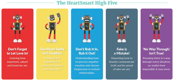 There are five phrases that are part of the HeartSmart program and we are sure you’ll start hearing them in your home as well. They’re called the HeartSmart High Five and here’s a brief overview: