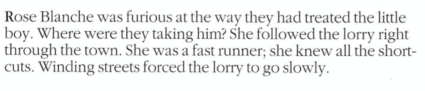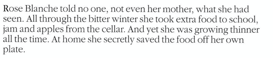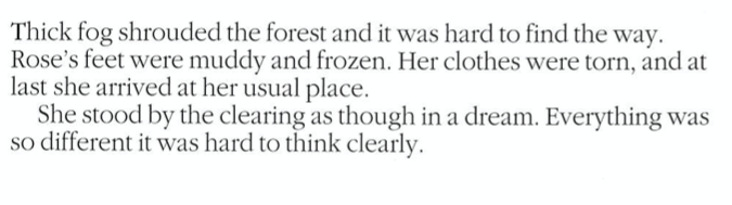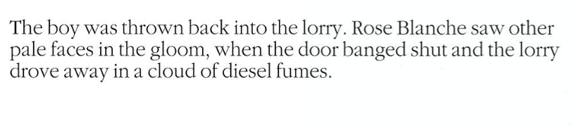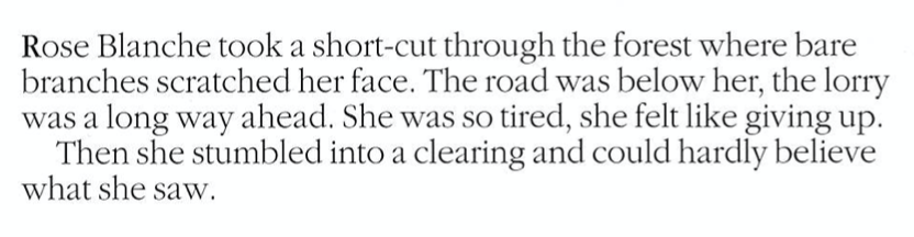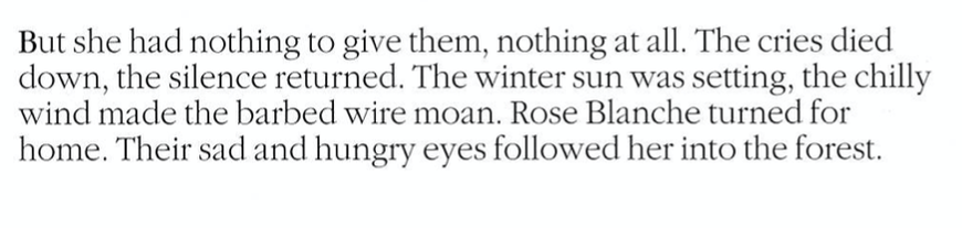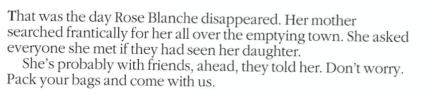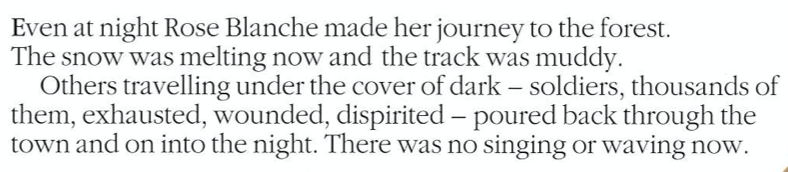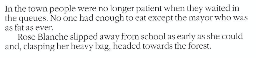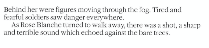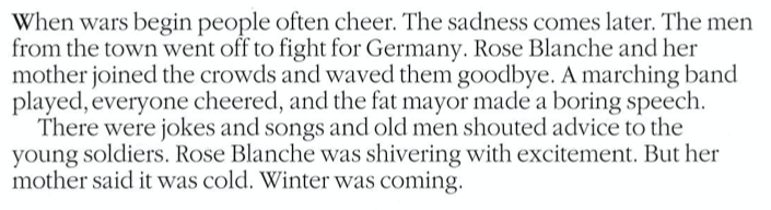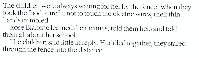 7. Before you read the text for this page, describe in your own words the scene that Rose Blanche came across.