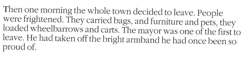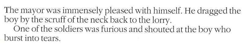 9.Write speech / thought bubbles for the boy, the mayor and Rose Blanche.