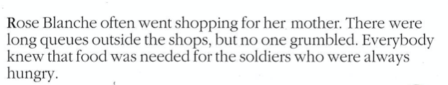 7. Draw and write a speech bubble for Rose Blanche and the child she is handing food to: what might they be saying?