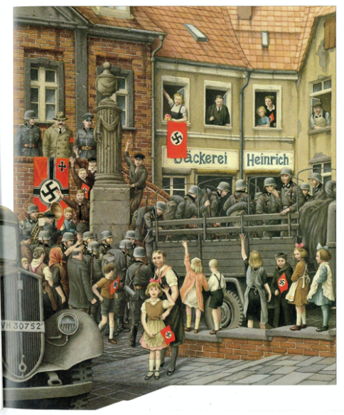 3. Find the words ‘Sieg’ and ‘Verboten’ in the picture. Research what they mean. What could these words suggest