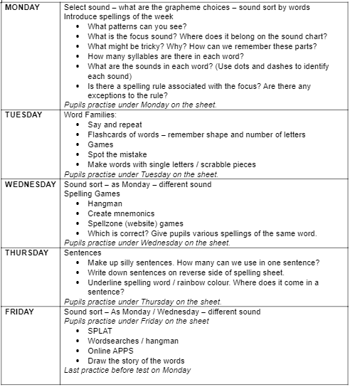 This week our spelling focus is on homophones. Homophones are words which sound the same but the different meanings have different spellings. Please select either the Bronze, Silver or Gold words to learn this week and remember to practise daily using the timetable below.