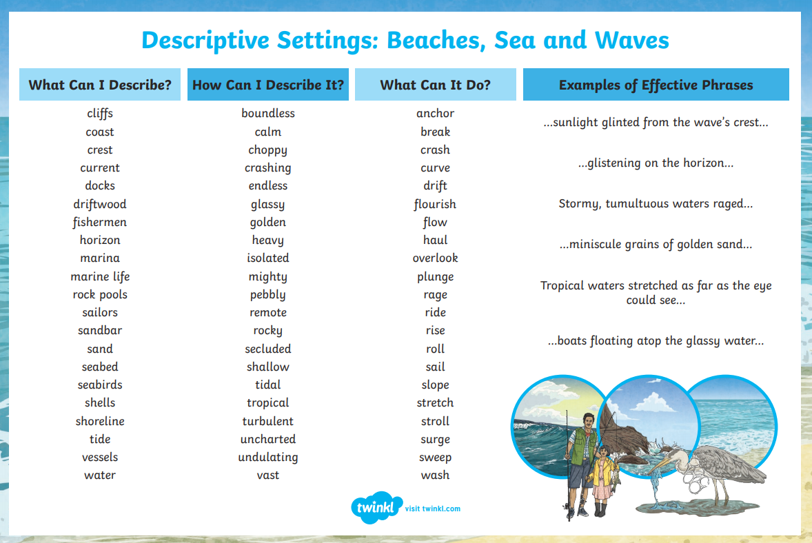 You only need to mind-map these but the more creative your descriptions are the more you will find tomorrow's writing that bit easier :-)! Check out the examples below for ideas!