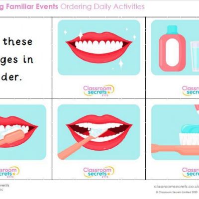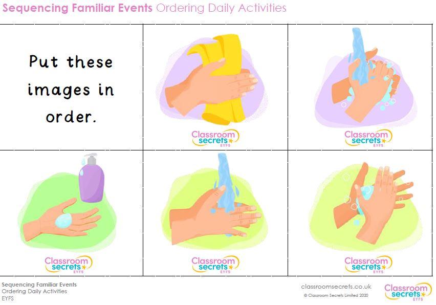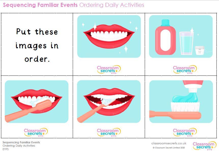 Your activity for today is to: sequence either your morning routine or a familiar activity such as brushing your teeth or washing your hands.