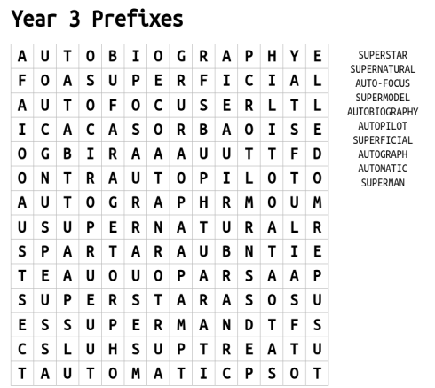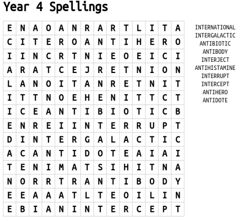 Word search! Find this week's spellings then choose 5 to write a sentence for to show its meaning.
