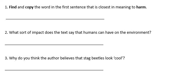 Read the text with an adult a few times to understand what the text is about. Then read the questions carefully and use the text to find the answers. Write your answers clearly in the spaces provided.