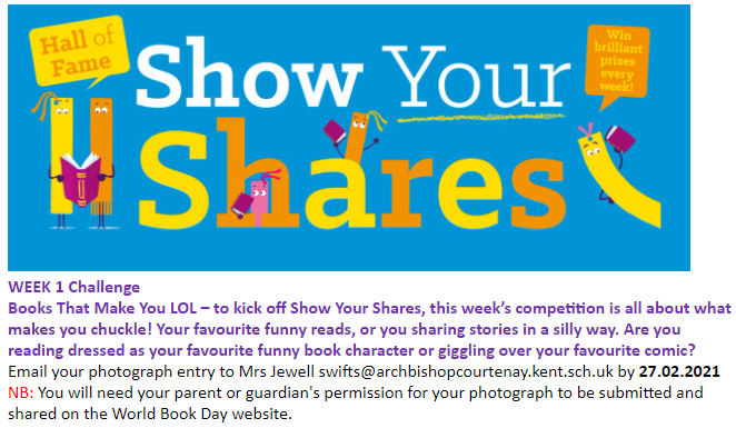Email your photograph entry to Mrs Jewell swifts@archbishopcourtenay.kent.sch.uk by 27.02.2021