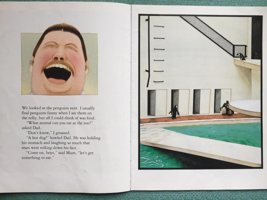 At the zoo in Anthony Browne's book, the family stops at a café to have lunch.